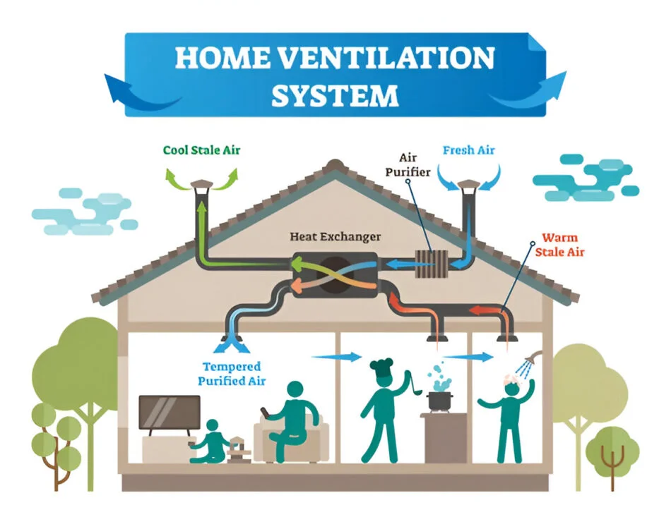 Home ventilation is the process of replacing or exchanging indoor air with fresh outdoor air. It’s essential for: